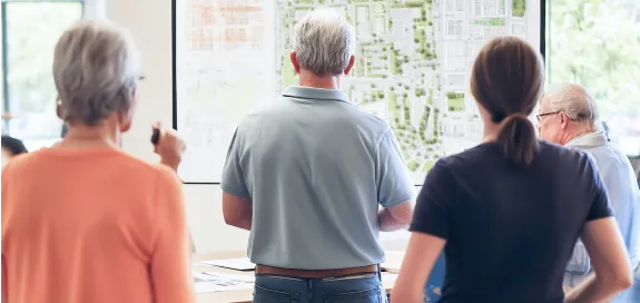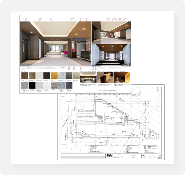 準備組合の段階で検討された基本設計図書の内容に基づいて、工事を施工するために必要な詳細な設計図書を作成します。