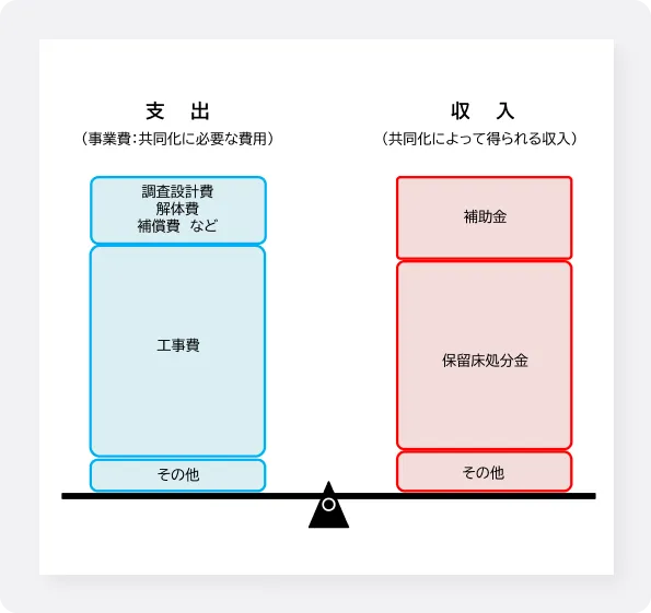 まちづくりを考える上で、具体化するためには事業成立性は重要です。地元住民や事業者などが安心して事業に参画できる事業性があることが前提となります。現段階では細かな諸元は作り込めませんが、将来像を検討する段階で、大まかなフィージビリティスタディ(事業化検証)を行うことで事業成立性を把握します。事業性に課題がある場合には改善の可能性などの検討を行い、課題解決のためのまちづくりが実現可能な事業であることを確認することで、安心して行うことができるのです。