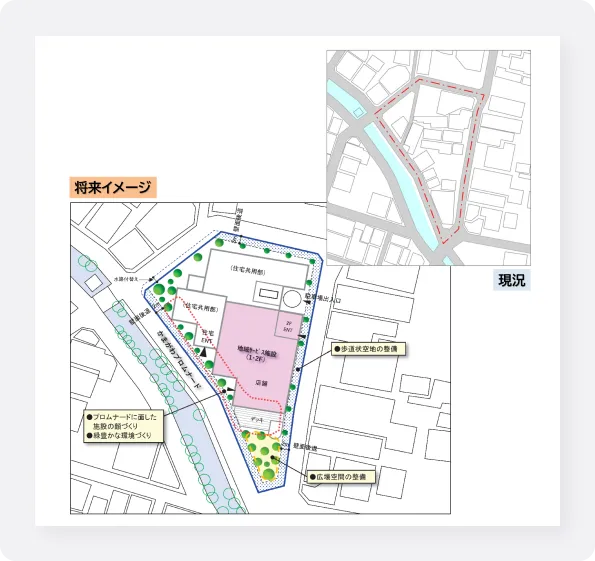 行政では地域の現況や課題を把握し、解決に向けたまちづくりの方向性をまちづくり方針として定めています。そのため行政の考えるまちづくりの方針を理解した上で、具体化するために必要なビジョンを検討する必要があります。